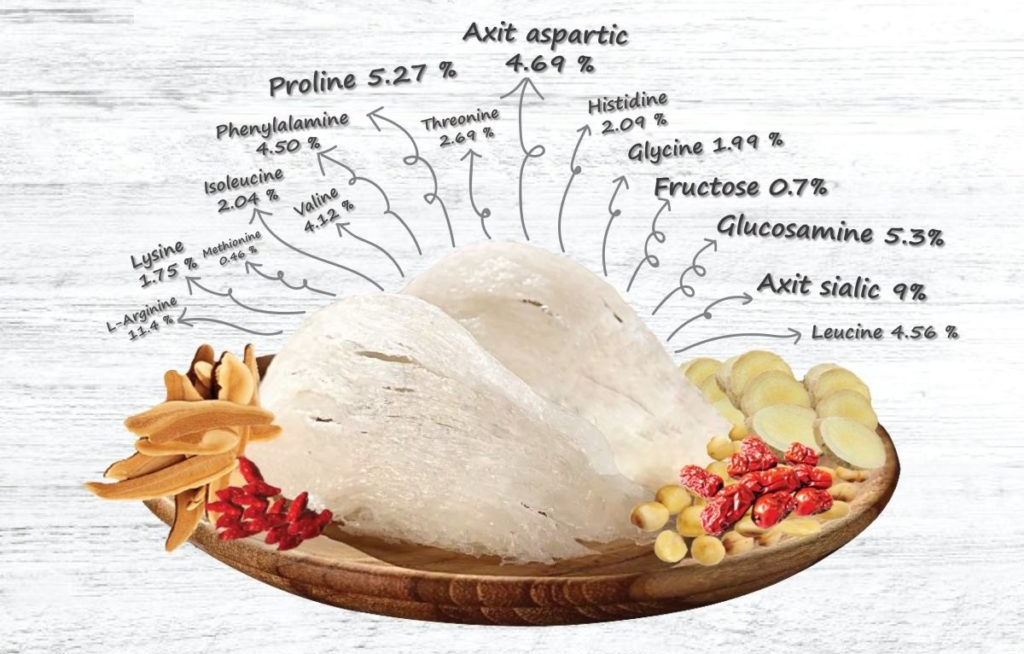 Trong tổ yến có chứa 18 loại axit amin và protein, mang đến nhiều lợi ích cho sức khỏe