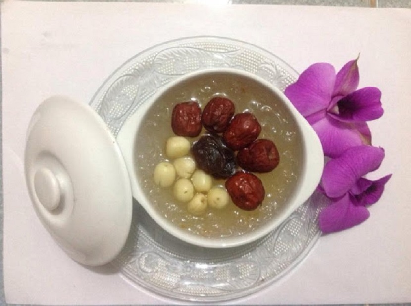 · Cho tổ yến, hạt sen, táo đỏ và gừng vào chén sứ. Đổ nước ngập hết phần yến có trong chén sứ để yến nở ra trong quá trình chưng. · Gừng sẽ khử mùi tanh của yến và làm món tổ yến chưng táo đỏ hạt sen thơm ngon hơn. · Sau khi yến nở ra thì cho đường phèn vào và chưng cho đến khi yến ngấm hết đường phèn. Không nên cho quá ngọt tránh làm ngán món tổ yến chưng táo đỏ hạt sen