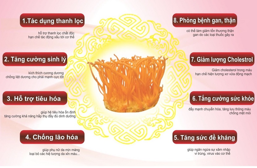 Lưu ý: Không rửa Đông trùng Hạ thảo, không dùng nhiệt độ quá 70 độ C và tránh ánh sáng trực tiếp vì sẽ làm giảm hoạt chất
