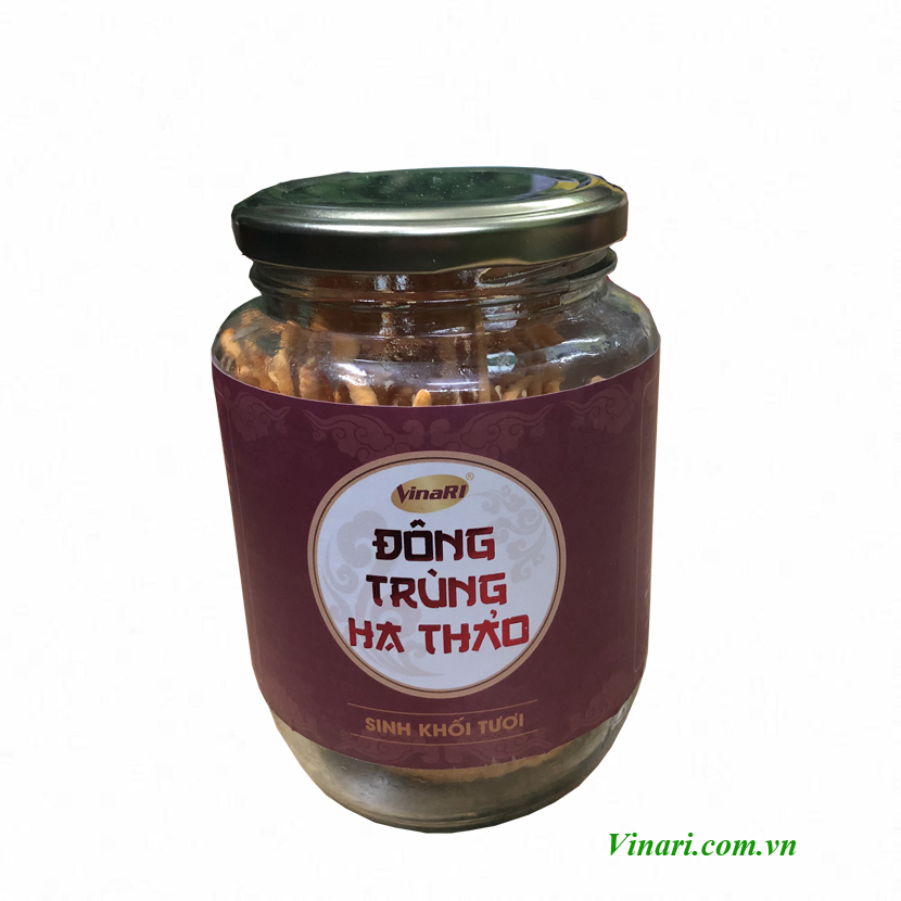 Ngâm rượu: Ngâm khoảng khoảng 60 đến 70 gram Đông trùng Hạ thảo tươi trong 1 lít rượu. Sau 1 tháng là sử dụng được. Có thể kết hợp các dược liệu khác như nhân sâm, linh chi