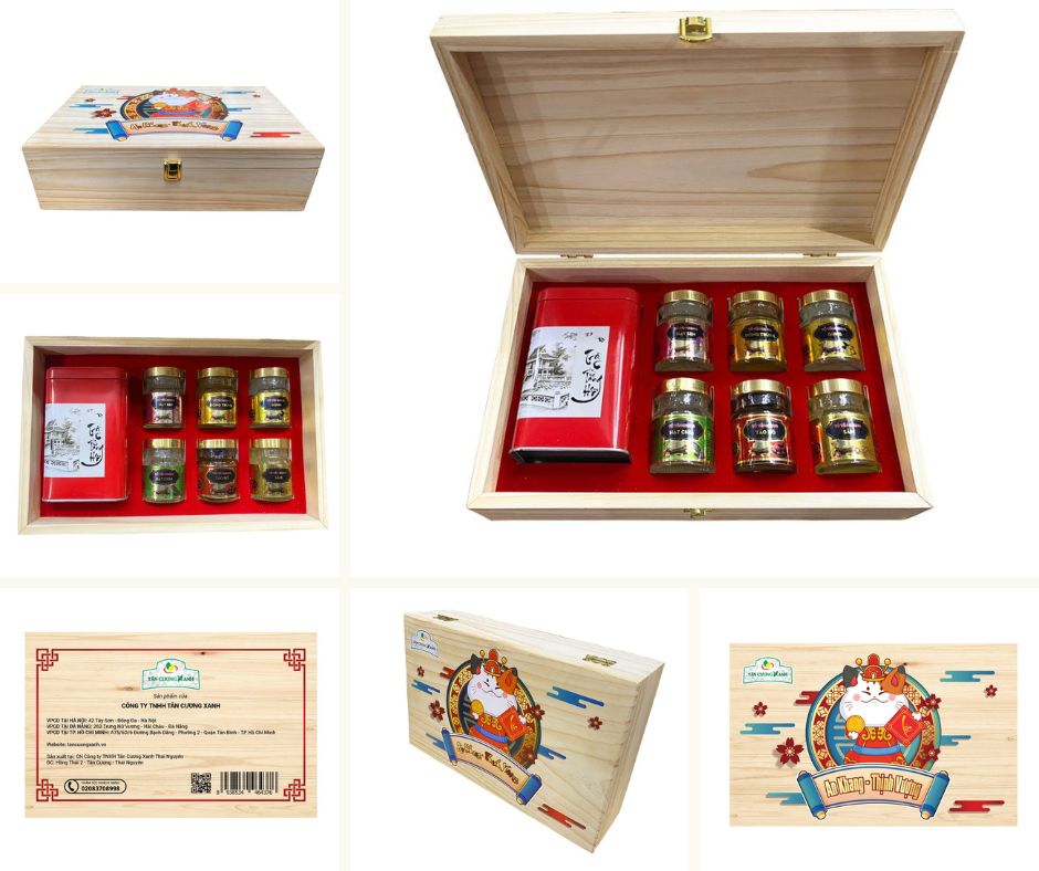Sản phẩm Hộp Quà Tết Mèo Đại Cát 2023 được thiết kế gỗ thông in 7 mầu, bên trong là khay cao su non đỏ tạo nên độ sang trọng, sản phẩm tặng kèm túi xách ngoài nguyên bộ. Sản phẩm phù hợp làm quà biếu đối tác & khách hàng cao cấp.