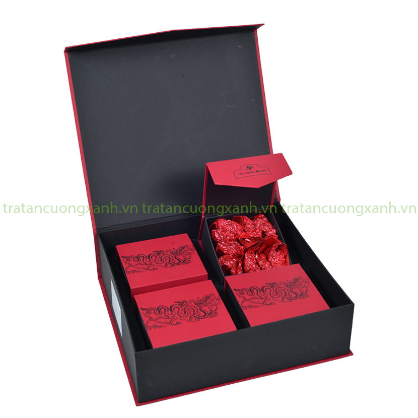 Mô tả : Hộp Trà Tân Cương Tứ Long được sản xuất bằng nguyên liệu 100% búp trà tân cương. Sản phẩm được sao chế thủ công với cách đánh hương bằng lấy lửa tự nhiên