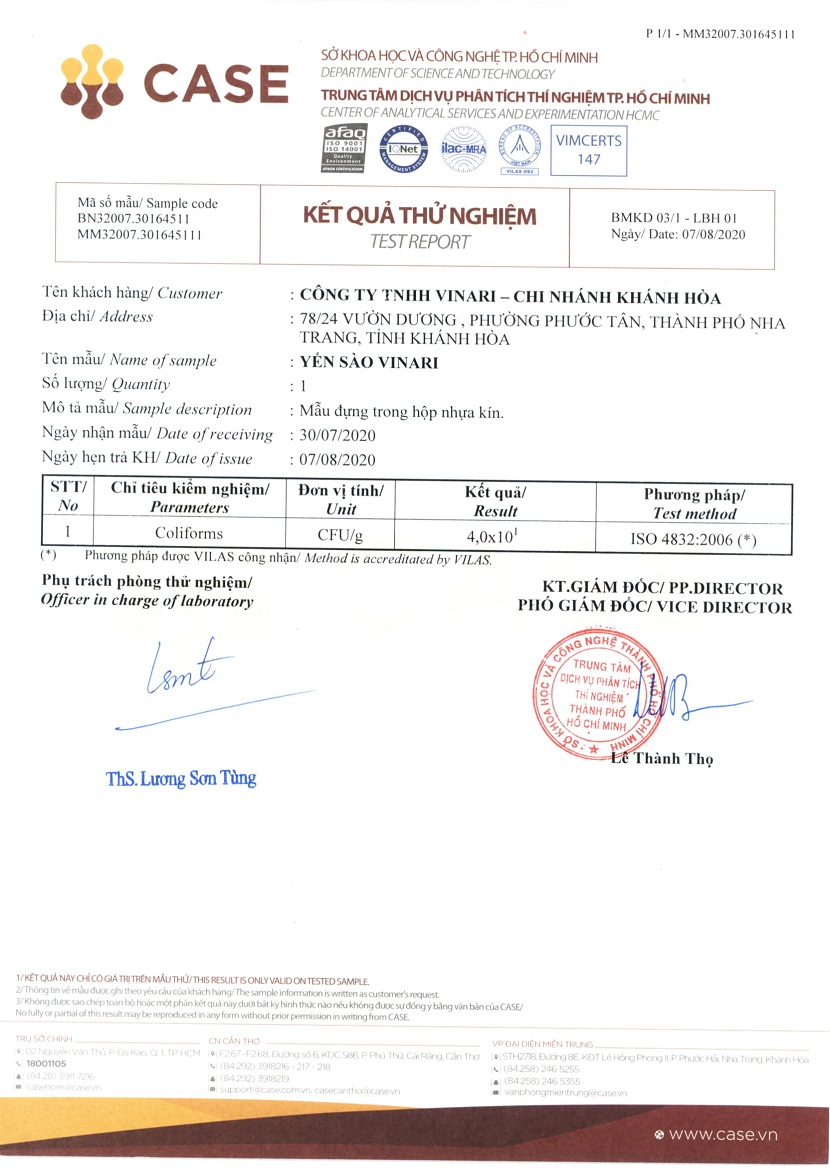 - Yến Sào Tinh Chế TC1 : 4 600 000 vnđ/100gram