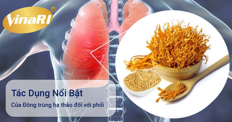 Đối với những bệnh nhân mắc các bệnh về hô hấp hay bệnh phổi thì đông trùng hạ thảo chính là dược phẩm hữu ích không thể bỏ qua. Trùng thảo có tác dụng tăng cường sức khỏe hô hấp, bổ phế, tránh được tình trạng cuống phổi bị thu hẹp. Trong đông trùng còn chứa các hợp chất polysaccharides giúp hồi phục các tổn thương trên phổi. Hợp chất này trong trùng thảo còn được chứng minh là thích hợp sử dụng cho người mắc bệnh lý về phổi.