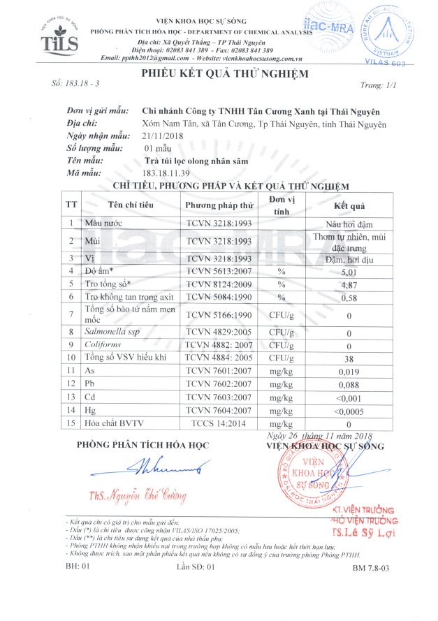 I : Mô tả : 20 gói x 2gram trà ô long sâm túi lọc được đụng trong túi thiếc và đựng trong hộp giấy đẹp. Sản phẩm được sản xuất trên nguyên liệu búp trà ô long ngon nhất và hương sâm tự nhiên