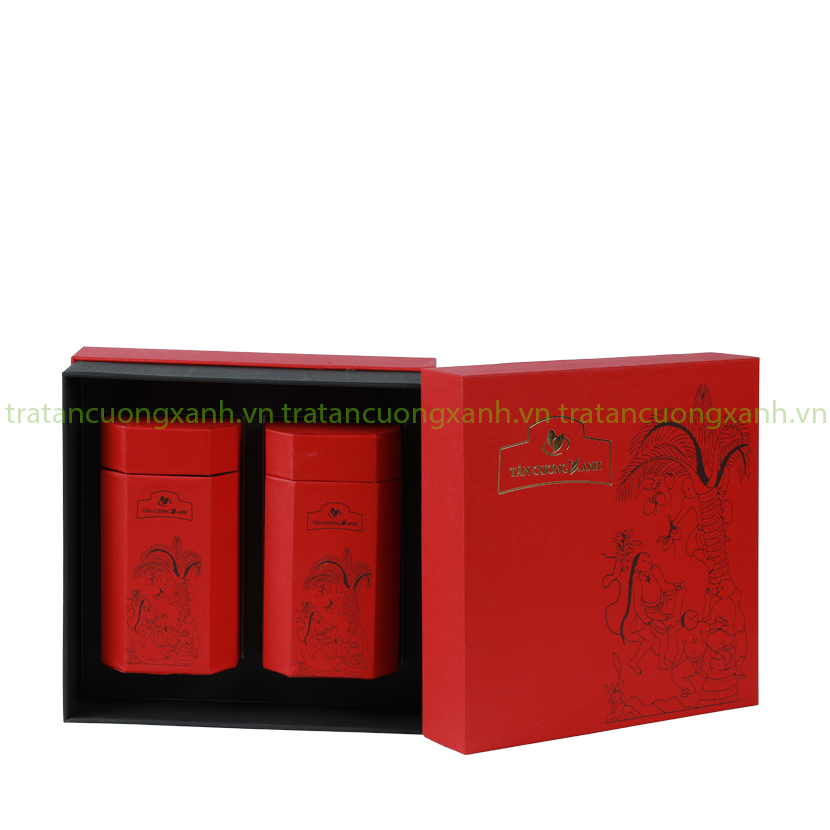 Mô tả : 200gram trà shan tuyết bạch ngọc hút chân không và đựng trong 2 hộp nhỏ. Bên ngoài là hộp giấy thiết kế dựa theo tranh hứng dừa dân gian đông hồ. Phủ ngoài là lớp giấy mỹ thuật đẹp