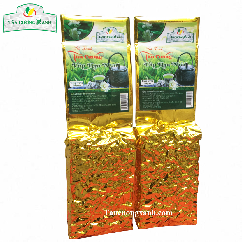 Mô tả : Trà ướp hoa nhài được sản xuất trên nguyên liệu là búp trà tân cương thái nguyên và hoa nhài tự nhiên theo tỷ lệ nhất định. Sản phẩm thơm ngon ngọt hậu của trà tân cương và thơm dịu nhẹ của hoa nhài