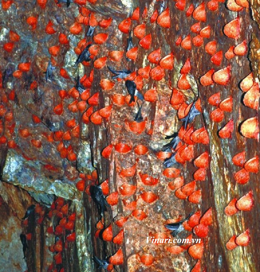 Trong hang động nhất là các hang động sâu, tổ yến được tiếp xúc với nhiệt độ- độ ẩm, các khoáng chất tự nhiên hình thành một môi trường vật chất đặc biệt tạo ra sự phản ứng của các chất trong tổ yến với môi trường xung quanh thúc đẩy quá trình lên men hữu cơ từ đó sinh ra nhiều oxit sắt trong khoảng 2 – 3 tháng. Chính điều này đã tạo nên màu đỏ của những tổ yến với màu sắc khác nhau.